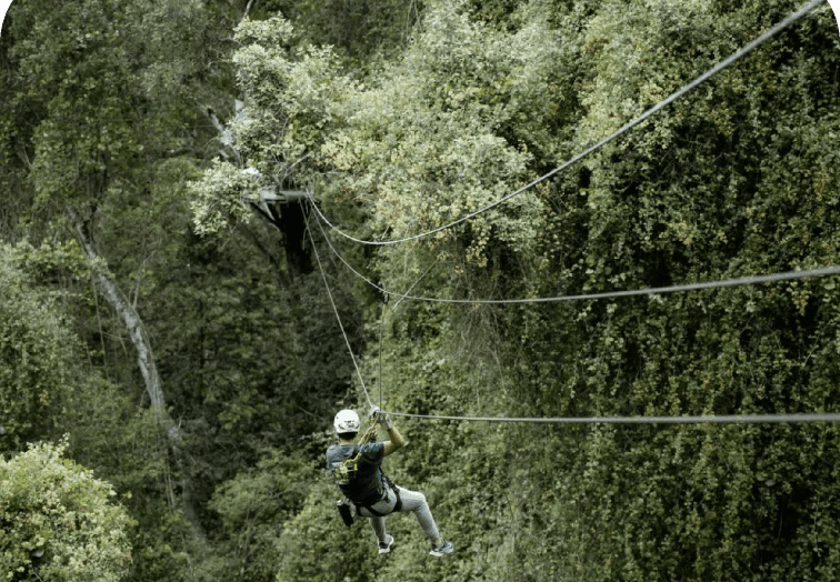 مغامرة مشوقة عبر الغابات الطبيعية الكثيفة، حيث تنزلق بين أشجار عملاقة على ارتفاعات شاهقة لتستمتع بالطبيعة من منظور فريد ومثير.